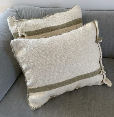 Cojín de seda rústico bicolor (gris casi negro-azulado)con fleco, perfecto para dormitorio, sofá o terraza.