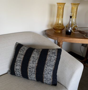 Cojín de Cuero, hecho a mano con revés de gamuza en el tono.